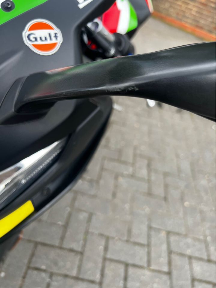 With only 2,401 miles under its belt and 2 former owners, this race replica version of the Aprilia RS 125 guarantees an exhilarating ride. Its powerful 125cc engine packs a punch, while the manual transmission allows you to take control of every curve and straightaway. Dressed in a sleek Black exterior with mesmerising race replica livery, you'll make a bold statement on the streets, commanding attention at every turn. It does have a few scuff marks on the mirrors (as shown in the images) but other than that, it's in excellent condition!