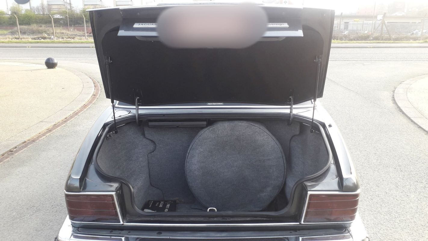 The car we offer here is a high specification Sovereign model. The Sovereign came with significantly more features than the base XJ6, including air conditioning, headlamp washers, a six-speaker sound system, rear self-levelling suspension (SLS), anti-lock braking system, and inlaid burl walnut wood trim. The headlamps fitted were the rectangular single units. The window frames were made from stainless steel.