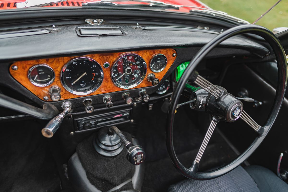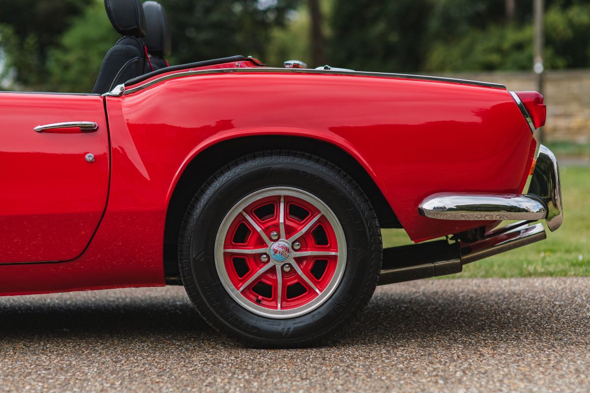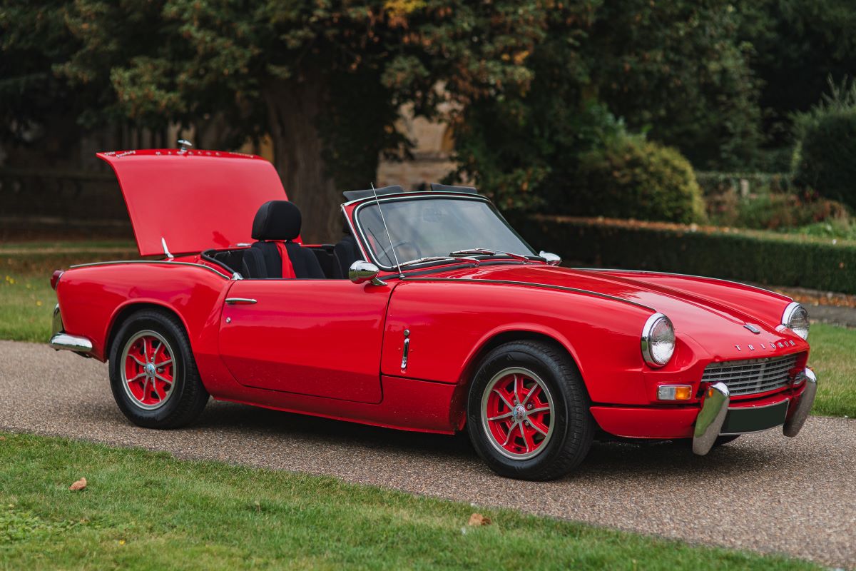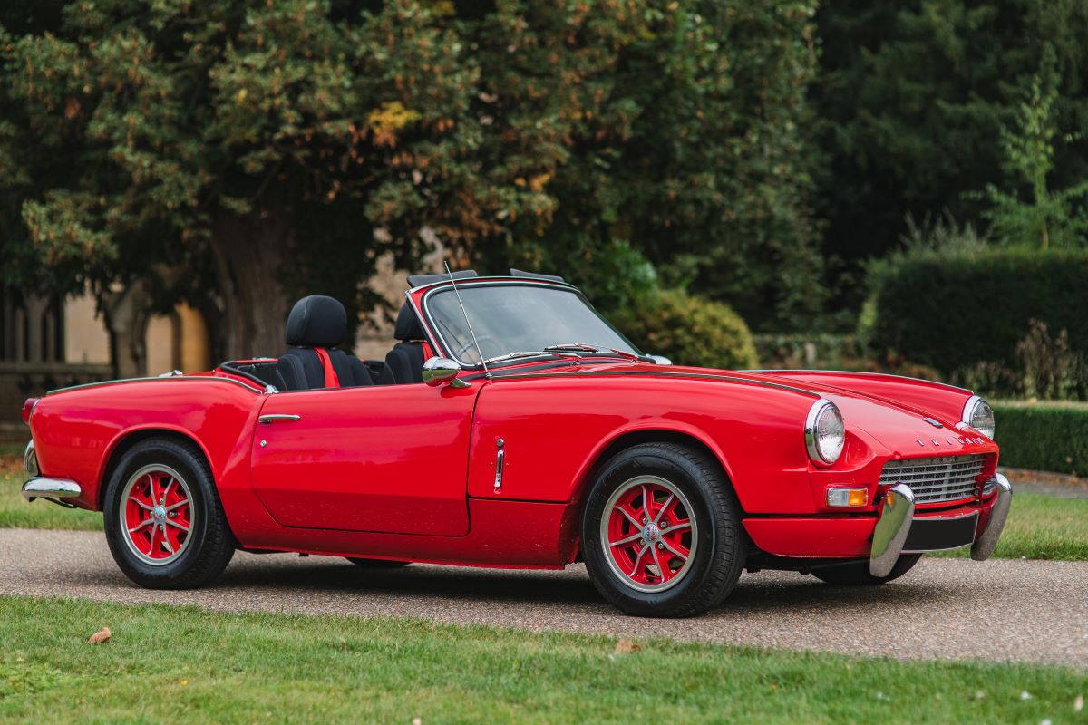 The Triumph Spitfire, a two-seater convertible Sports Car, was first introduced at the London Motor Show in 1962 to rival the Austin Healy Sprite and MG Midget. It was manufactured between 1962-1980 at Canley Works in Coventry with around 315,000 models made over the 18 year period. Styled for Triumph by Italian designer Giovanni Michelotti, the Spitfire was popular in street and rally racing. They won numerous SCCA National Sports Car Championships in F and G production classes, and it won its class at the 1964 Tour de France rally coming in second overall and then won the 1964 Geneva Rally. In 1965, a Spitfire won its class in the Alpine Rally.