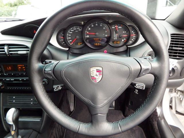 Absolutely stunning and now becoming very hard to find with this spec, mileage and pedigree. This rather special 911 996 Turbo Tiptronic finished in Arctic Silver metallic paint and complete with a huge list of factory fitted options which includes factory fitted Aero kit, full black extended smooth natural leather interior trim including dashboard, door panels and center console.