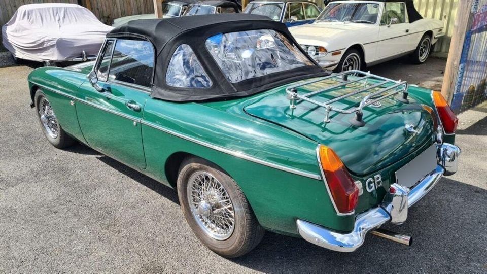 The MGB is a two-door sports car manufactured and marketed from 1962 until 1980 by the British Motor corporation, later the Austin-Morris division of British Leyland, as a four-cylinder, soft-top sports car.