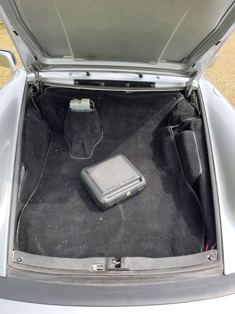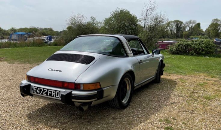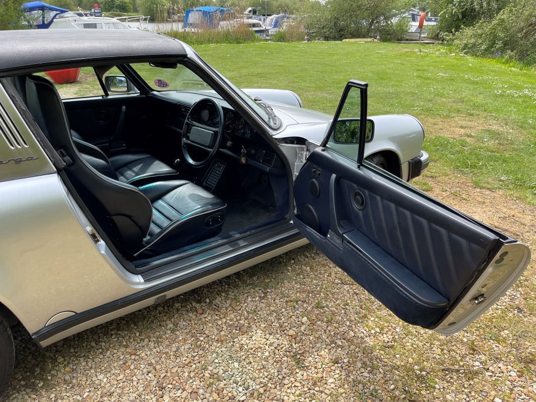 The Targa roof is perfect, electric door mirrors, electrically adjusted front seats, original un-used space-saver wheel with compressor, Impact bumpers front and rear, rear seat belts, 16" Fuchs forged alloy wheels. Extensive history file including CD of photos from 2014 restoration, multiple MOT certificates and piles of invoices.