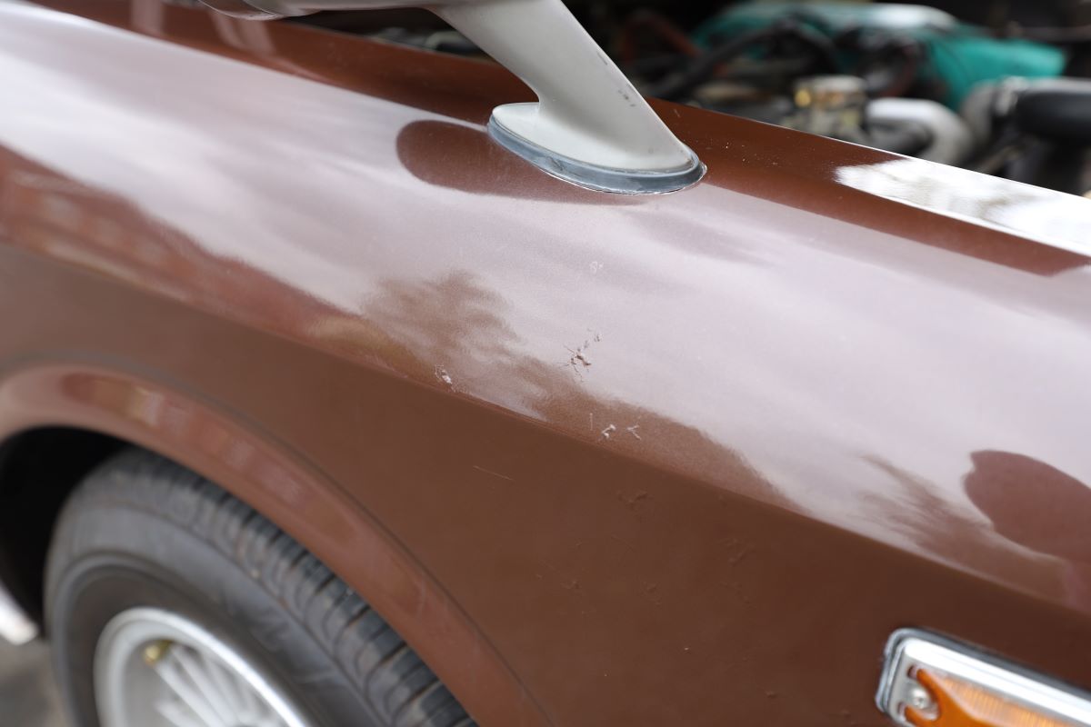 Exterior is in a fair condition for its age, slight crack on rear door, a scratch on the other rear door, the front two fenders have paint bubbling underneath, scratches on the edge of the doors and some paint bubbles near the bottom the driver’s door. All expected for 42 years old!