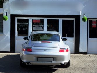 The Porsche 911 is a two-door 2+2 high performance rear-engine sports car introduced in September 1964 by Porsche AG of Stuttgart, Germany. It has a rear-mounted flat-six-engine and originally a torsion bar suspension. The car has been continuously enhanced through the years but the basic concept