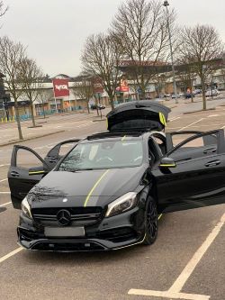 We are pleased to present this stunning MERCEDES A45 YELLOW NIGHT EDITION !! AMG 4MATIC AUTO PREMIUM SPEEDSHIFT 5dr 2018 1.9Litre. Please note the car has Red interior leather Stitching as shown in pictures which has been changed by the previous keeper, however it is an official Yellow