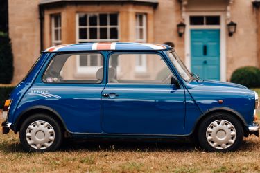 The Mini Sprite was released in anticipation of the 25th anniversary of the Mini. Its name revived the old Austin-Healey name last used in 1971. Produced in 1995 making it one of the later models of the Mark VI. Finished in mid blue with Union Jack roof. Light grey upholstery on black