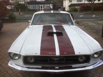 A Classic Icon Reimagined This 1967 Ford Mustang Fastback, painted in the gorgeous Wimbledon White with a Burgundy stripe, stands as a testament to American automotive ingenuity. With its odometer showing a mere 94,000 kilometers, this motoring marvel promises a journey filled with excitement and