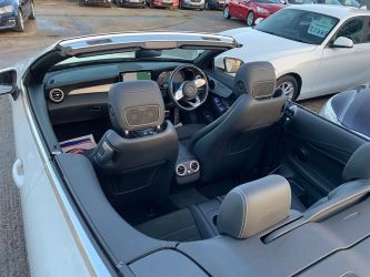 Presented in gleaming white with red convertible hood, this is a rapid 2 litre AMG. Mercedes C300 2.0 D AMG LINE (PREMIUM) CABRIOLET G-TRONIC+ EURO 6 (S/S) 2DR October 2018. One family-owned car. 2 Litre diesel (ULEZ Compliant) Automatic 19,000 Miles 2 Doors 4 Seats. (Rear