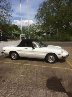 1977 Alfa Romeo Spider 2000 Veloce. Imported from California in 1989 restored and resprayed red and converted to RHD. Restoration work carried out in 2012. 70,513 miles. Only 2 former owners. Manual. New mohair convertible roof. New trailing arms springs and shock absorbers to