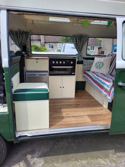 1973 Volkswagen T2 Bay Window Campervan – Classic Adventure Ready This 1973 Volkswagen T2 Bay Window Campervan is a true classic, perfect for road trips, weekends away, or a rolling restoration project. Featuring a retro-fitted pop-top roof, a 1600cc engine, and original Westfalia interior